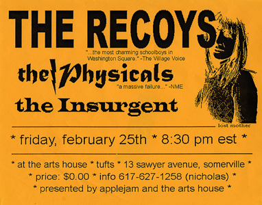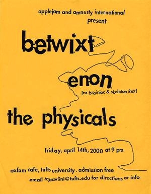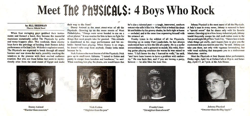 When Jonathan started college in 1998 he founded the garage rock band, The Physicals. Jonathan wrote all of the music and lyrics, and as “Johnny Physical,” became the face of the band. Between 1998 and 2000, The Physicals played at Tufts University and along the East Coast of the U.S., playing on the same bill as The Recoys, Enon, and Kind Congo Powers. While his pompadour and black-rimmed glasses were a tacit nod to his childhood hero, Buddy Holly, his music reflected his major influences: The Ramones, The Stooges, T-Rex, The Velvet Underground, and The New York Dolls. The Physicals were voted the best band on the Tufts University campus and Jonathan found himself developing a small cult following.
